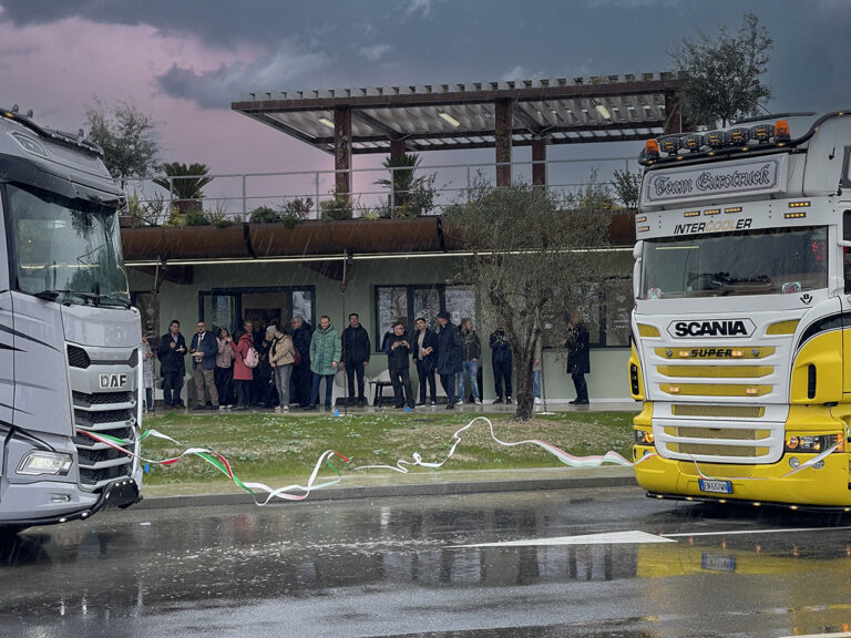 All’inaugurazione hanno partecipato istituzioni locali, nazionali ed europee, associazioni e operatori della logistica, per riflettere sul futuro del trasporto merci, la qualità della sosta e le politiche europee di coesione infrastrutturale.